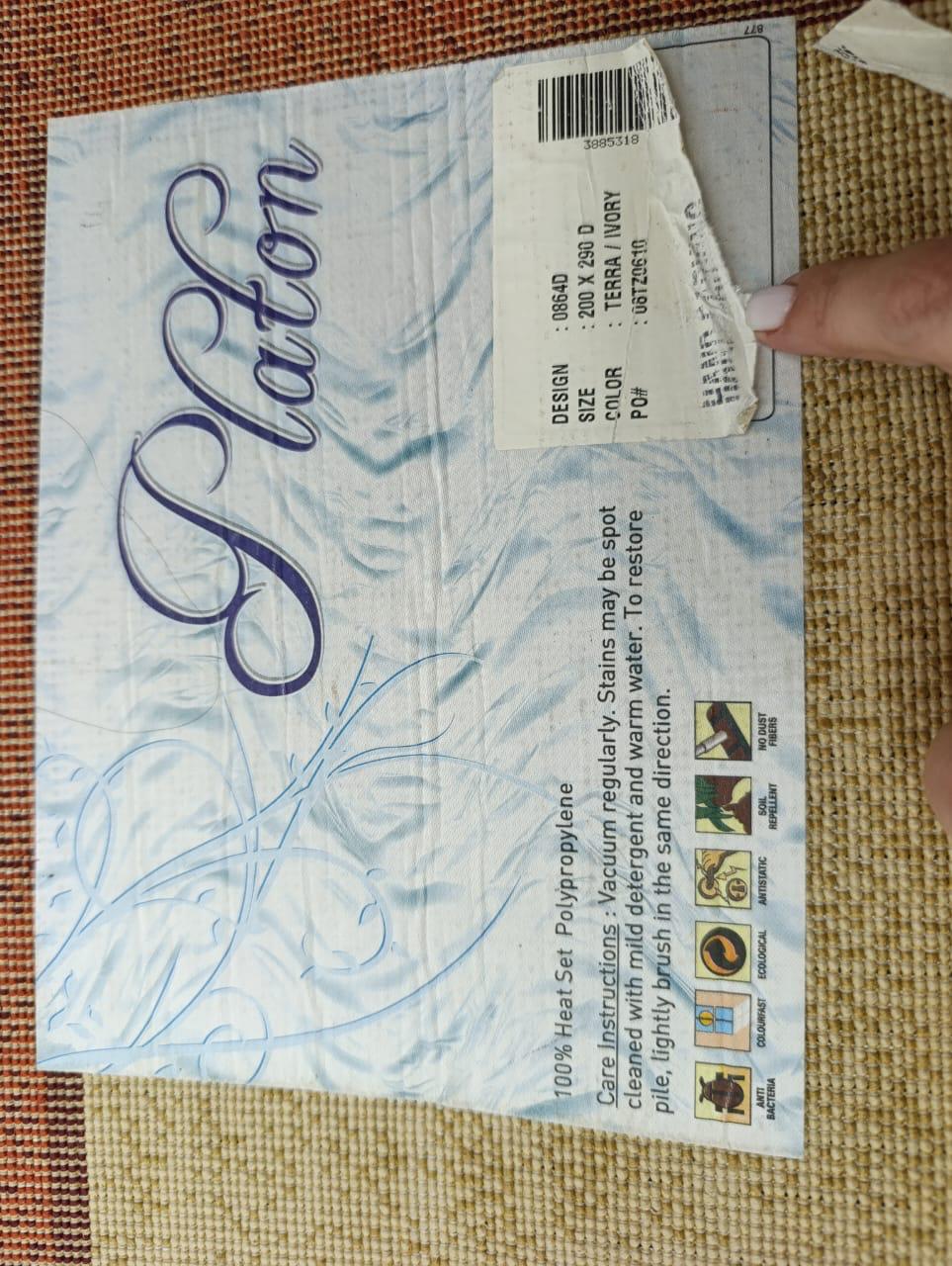 Carpet 200x290cm. Platon Brand. Terra and Ivory Color. Excellent Condition. Video Available.