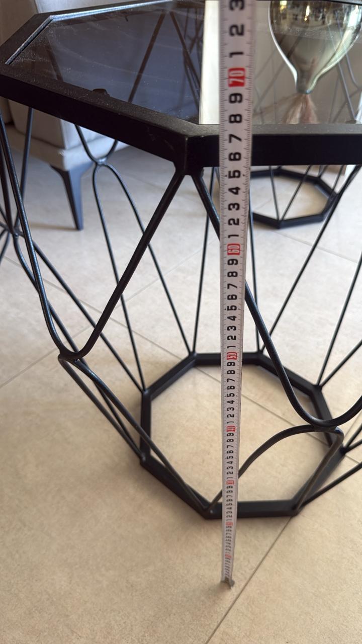 Set of 3 Pieces. 1 Center Table and 2 Side Tables. Big Table 85cm. Diameter, Side Tables 55cm Diameter. Steel and Glass Material - Black Color. Super Excellent Shape. Video Available.