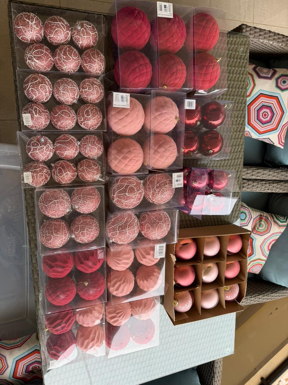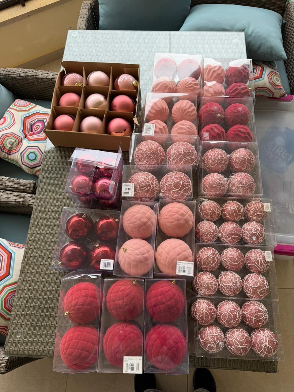 Full Christmas Decoration. All from Storium Saliba. Pink and Burgundy Colors. Full Bundle 77 pieces.