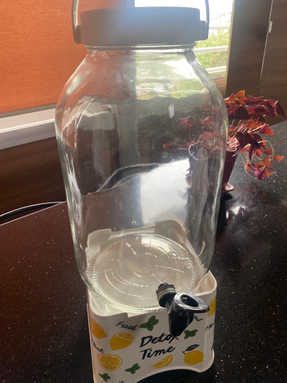 Glass Dispenser. Size 30x15cm. Capacity of 4 Liters. Like New Condition.