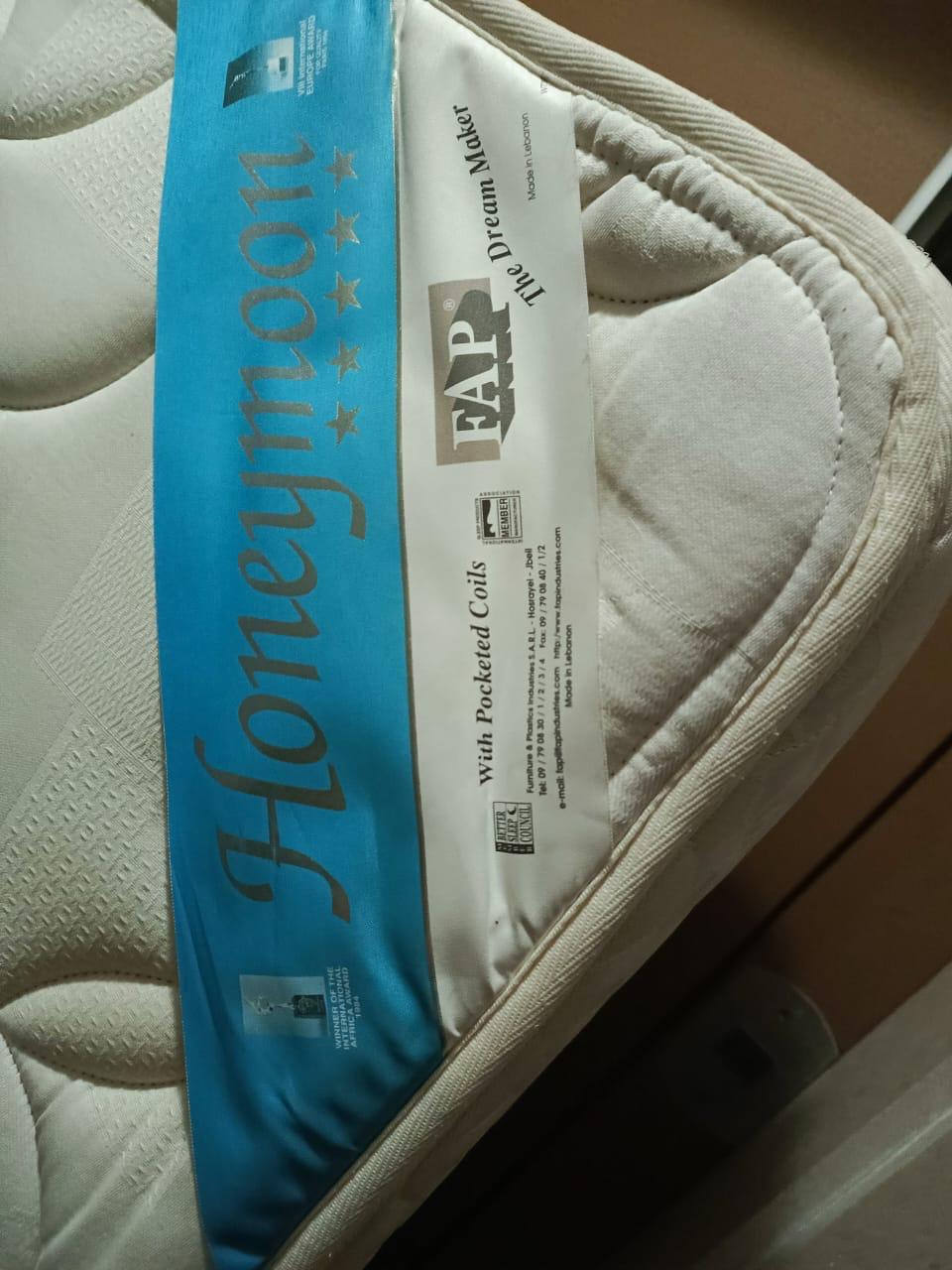 Fap Brand. Honeymoon Model. Double Mattress 180x195cm. Pocket Coils. Super Excellent Shape. Can be Seen Live - Jbeil Area.