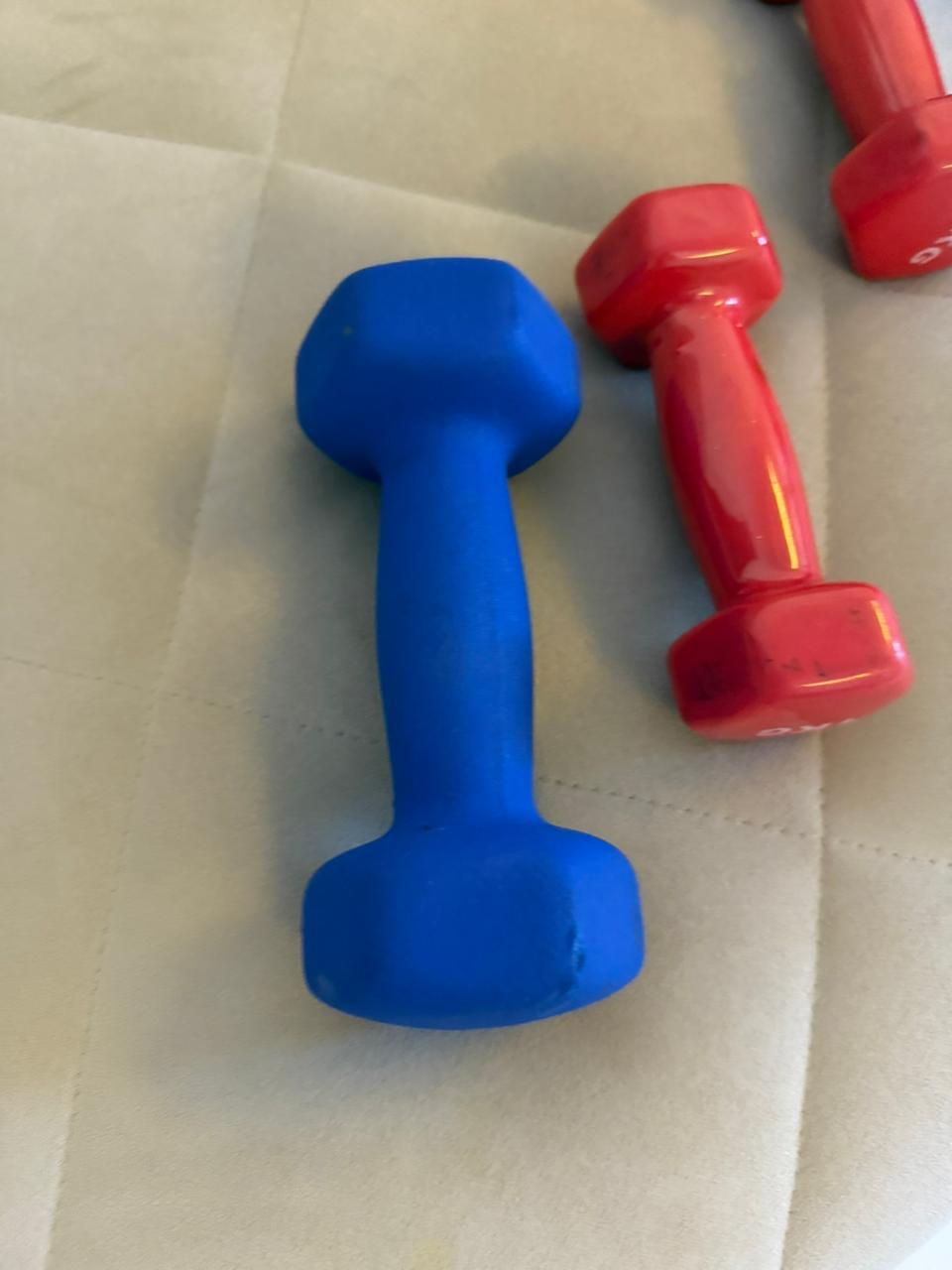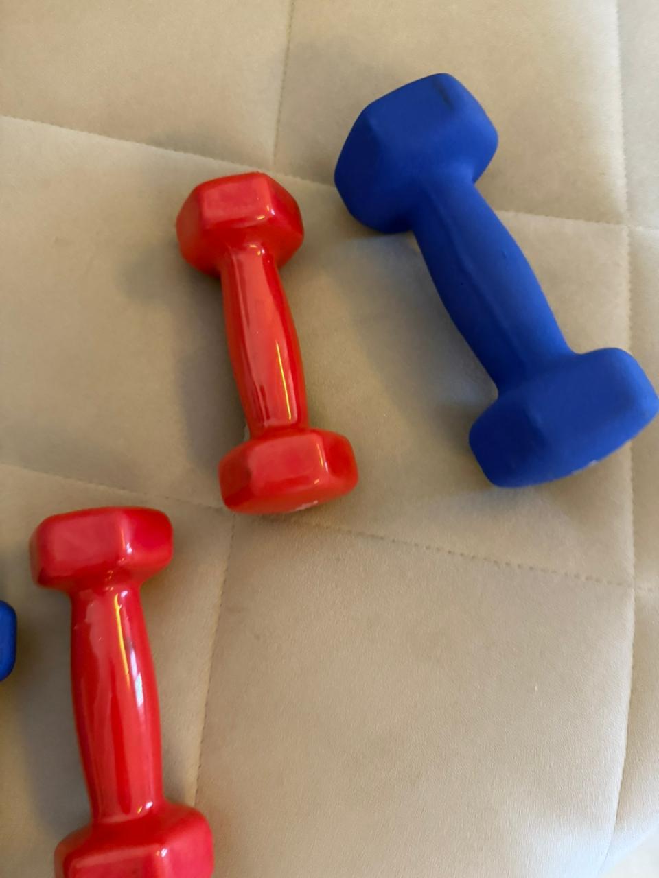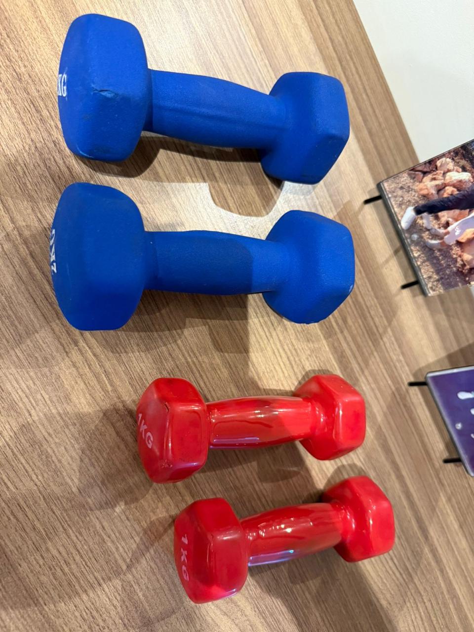 2 Pairs of Dumbbells. Blue Ones 2 Kgs Each, Red Ones 1 Kg Each. Used in Excellent Shape (Some Sign of Usage - Nthg Major).