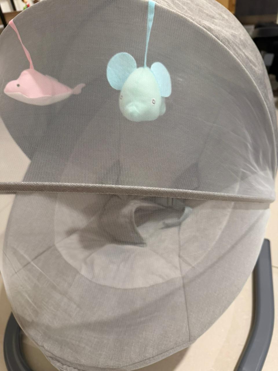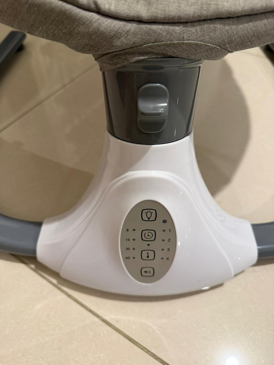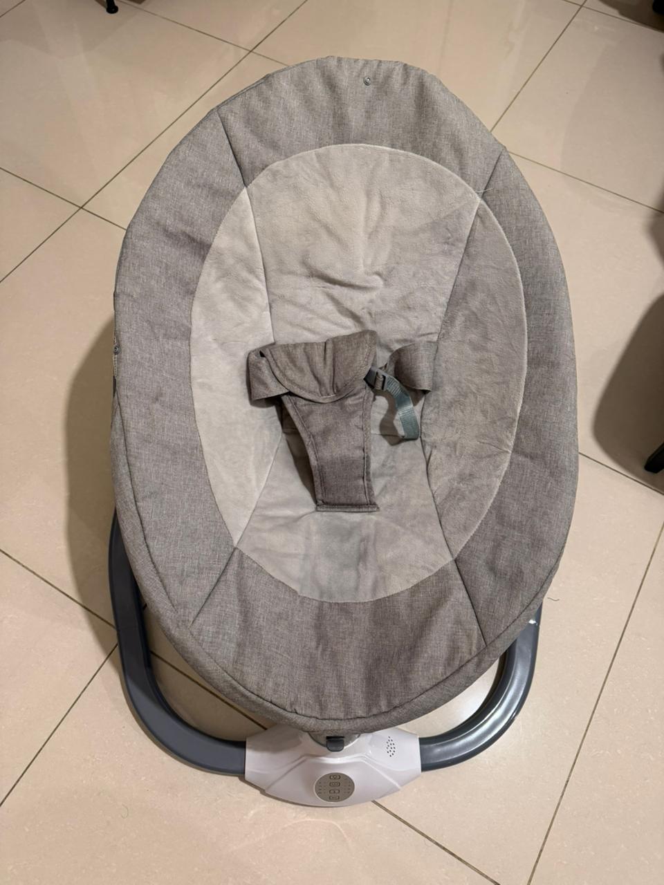 mart Electric Swing. Grey Color. Holds Baby Newborn to 6 Months. 3 Speeds And Back Rest Adjustment. Comes with Toys and Mosquito Net.