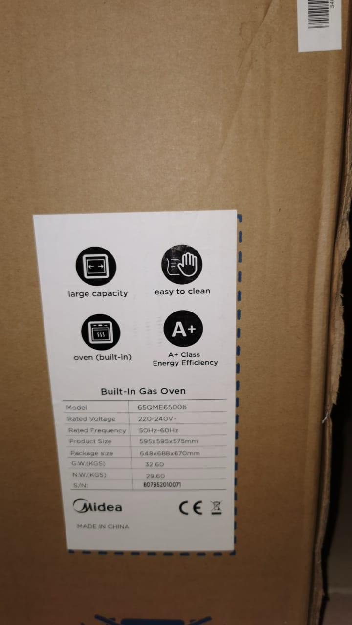 Midea Brand - By the Reseller ot Samsung. Built In Gas Oven. Inox Color. 60cm Width. Brand New Sealed Box. Original Price 365$.