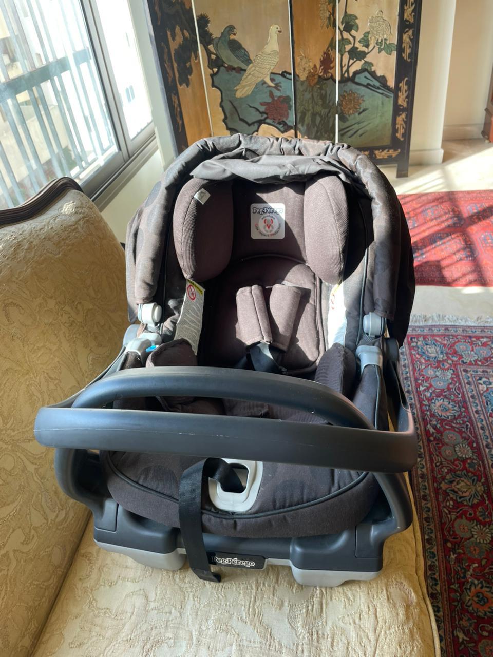 Infant Car Seat. Peg Perego Brand - Suitable Newborn to 15 Months. Base Included. Used in Excellent Condition. Video Available. Original Price 400$.