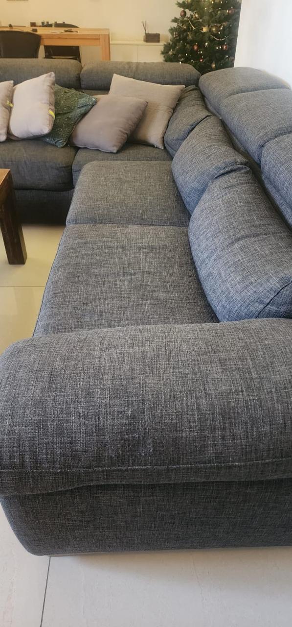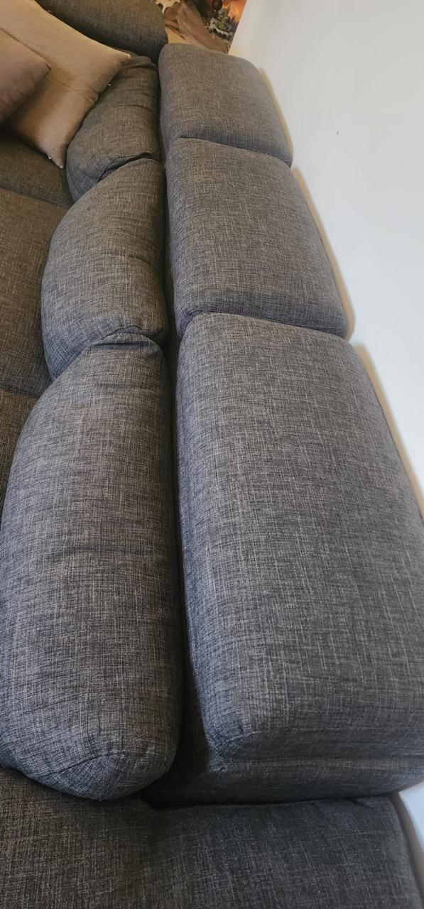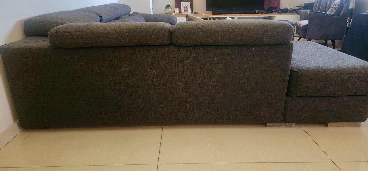 L Shape or Corner for Living Room. Italian Model from Mobilitop. Dimensions 250x300cm. Grey Color - Adjustable Head Rest. Original Price 5000$. Must Go Asap. Can be Seen Live - Keserwan Area (Ghadir).
