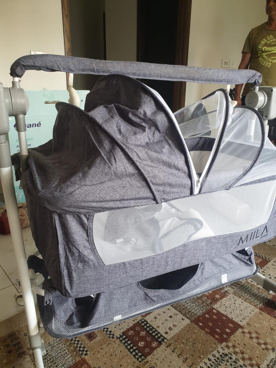 Miila Brand - Made in Spain. Next to Me with Swinging Option. Music and Electric Swing Option are Included. Holds Baby Newborn to 7 Months. Like New Condition. Original Price 250$.