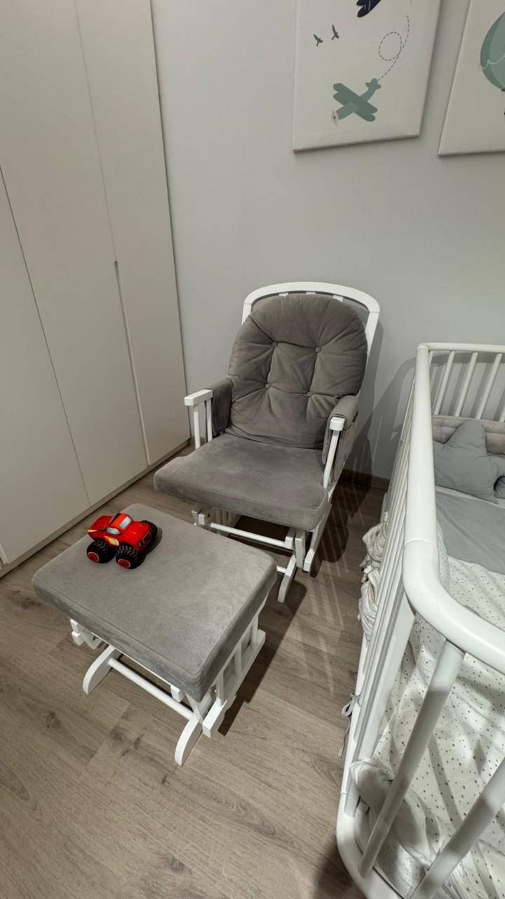 Nursing Chair. Miila Brand from Le Bouquet. White Wood and Grey Fabric. Excellent Shape- Video Available.