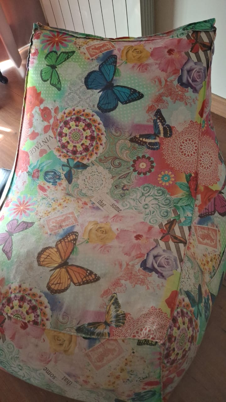 Relax Chair, Bean Bag or Pouf. Colored Fabric - Dimensions 92x68cm. Very clean - Like New. Ask for Real Video.