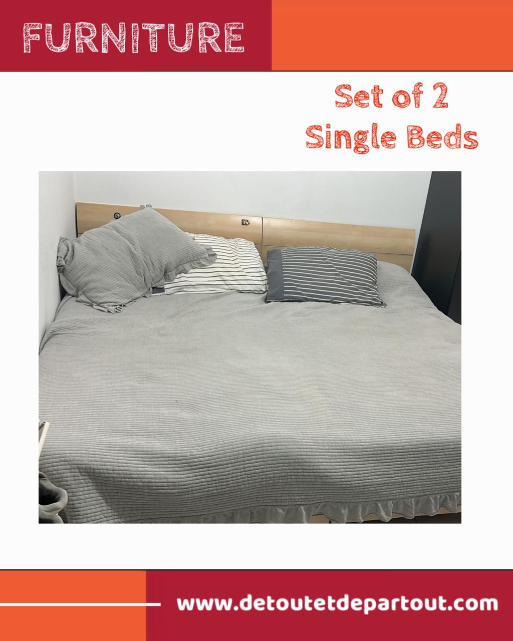 Set of 2 Single Beds. Tailor Made by Georges Matta. Real Solid Base Wood - 100x195cm. Excellent Shape - Video Available.