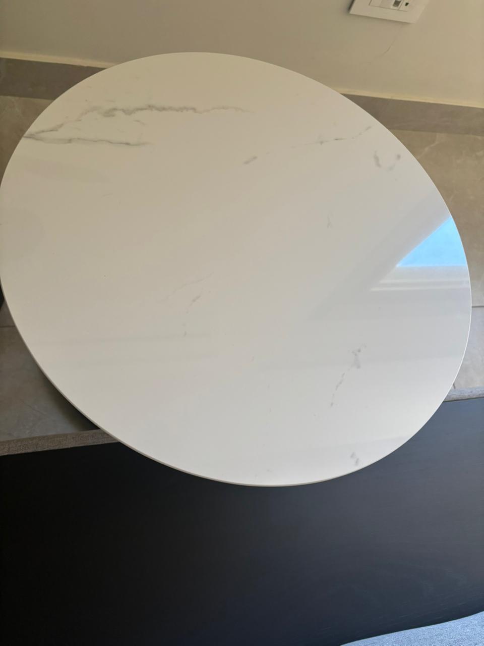 Ceramic Table Top with Steel Base. Diameter 50cm. Height 47cm. Tailor Made but Color Didnt Match. Original price 150$. New Not Used.