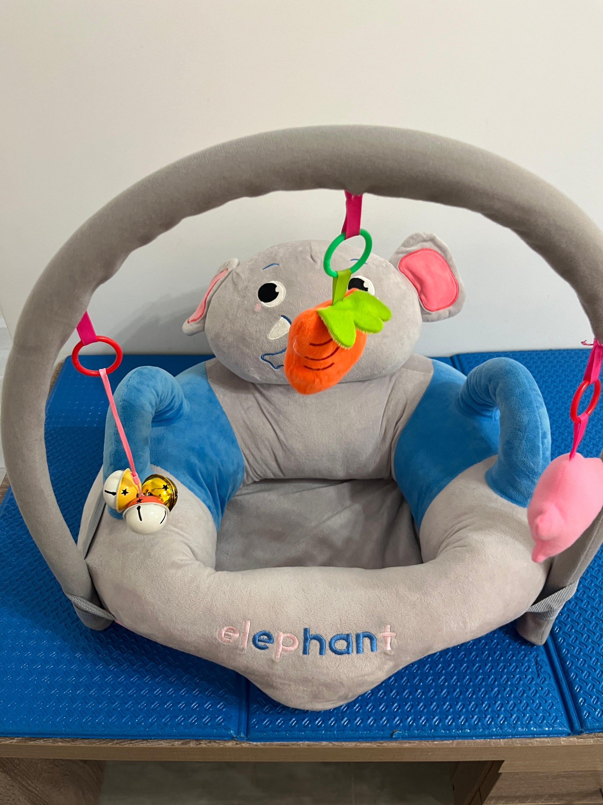 Sit and Play Cushion or Pillow. Elephant Theme - Unisex. Suitable 4 Months to 1 Year. Like New Condition - Video Available.