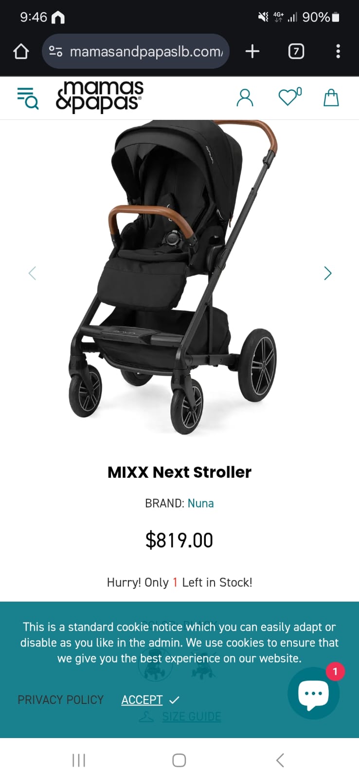 Nuna Brand. Mixx Next Model. Stylish High End Stroller in Like New Condition. Used Few Times Inside the House. Original Price 819$.