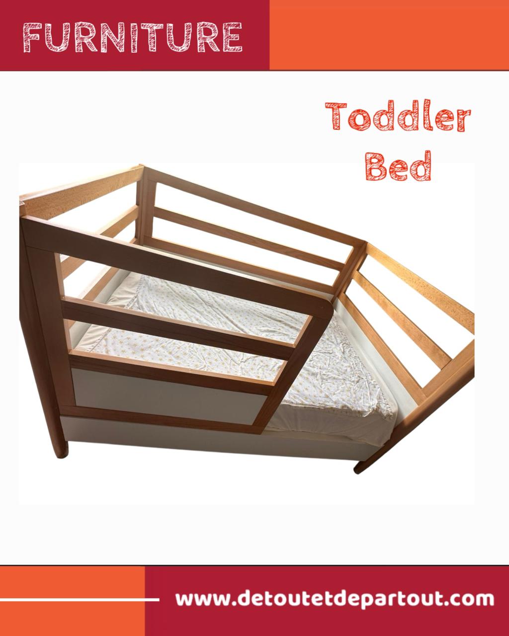 Toddler Bed. Zein Wood and Melamine. White and Beige Colors. Suitable 1 to 6/7 Years. Mattress included. Dimensions 146x110cm. 100cm Height. Excellent Shape - Can be Seen Live (Baabda).