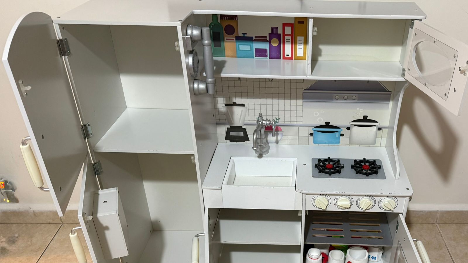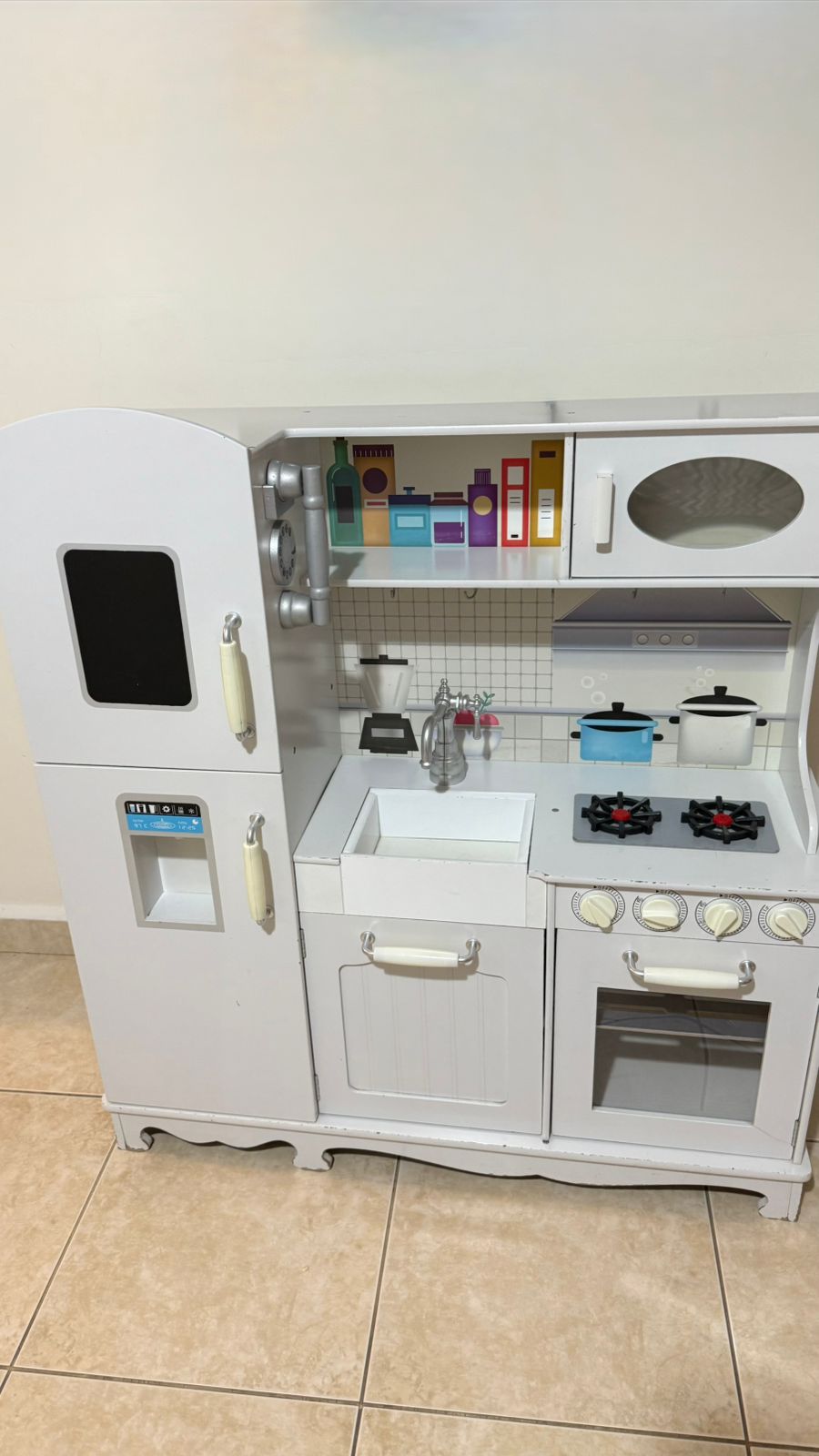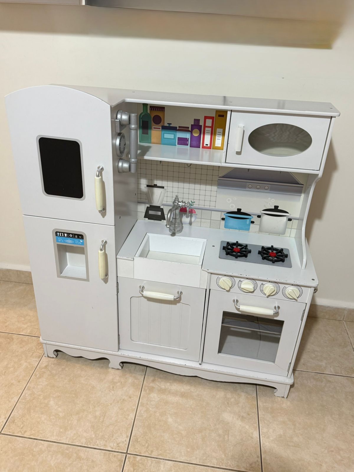 Wooden Kitchen. White Wood. Dimensions 100x100x30cm. Excellent Shape - Video Available. Originally Bought for 220$.